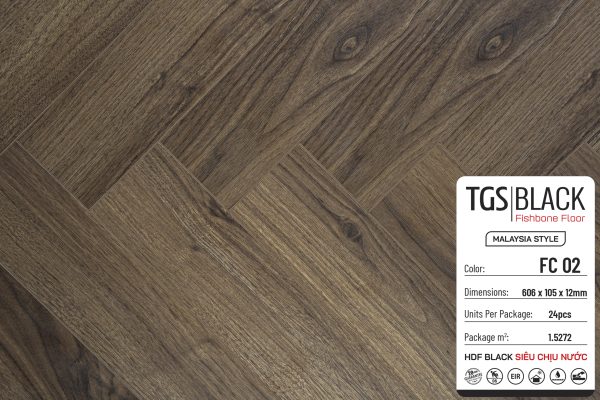 Sàn Gỗ TGS Black Xương Cá – Germany Technology cốt đen siêu chịu nước, đã xuất hiện và được kiểm nghiệm chất lượng qua thời gian khá lâu tại thị trường Việt Nam. Với màu sắc đa dạng, phong phú, chất lượng ổn định cùng cốt gỗ siêu bền… Sàn Gỗ TGS Black xương cá được ứng dụng phù hợp với nhiều không gian nội thất như phòng khách, phòng ngủ, văn phòng, trường học, nhà hàng, khách sạn…phù hợp cho cả thiết kế cổ điển, tân cổ điển hay thiết kế hiện đại.